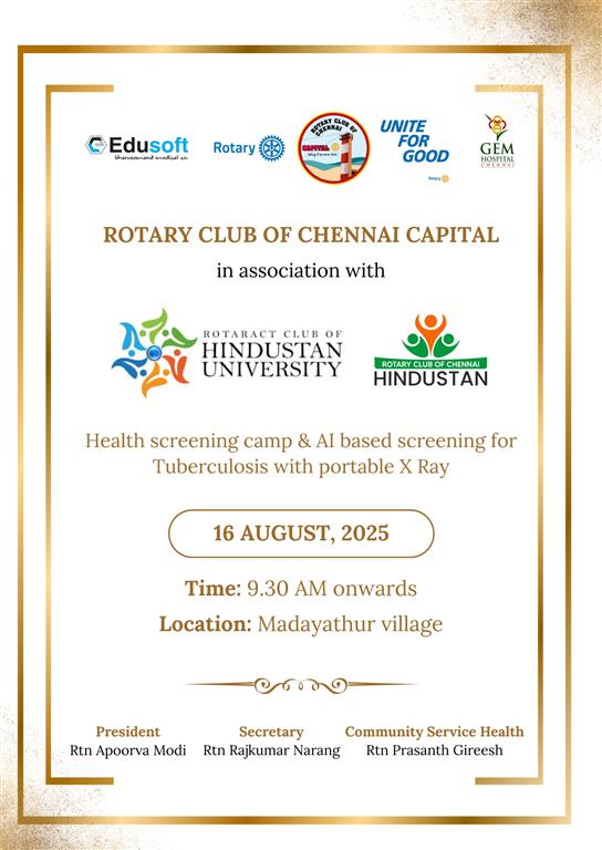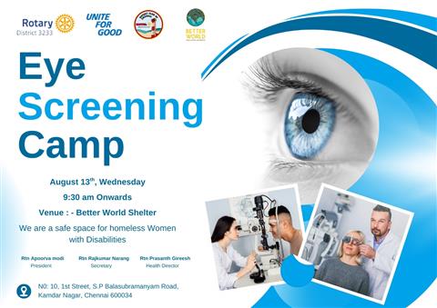 • Title: Eye Screening Camp • Organized by: Rotary Club of Chennai. . .