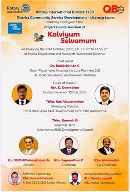 Kalviyum Selvamum Project Launch Date: 23rd October 2025 Venue:. . .